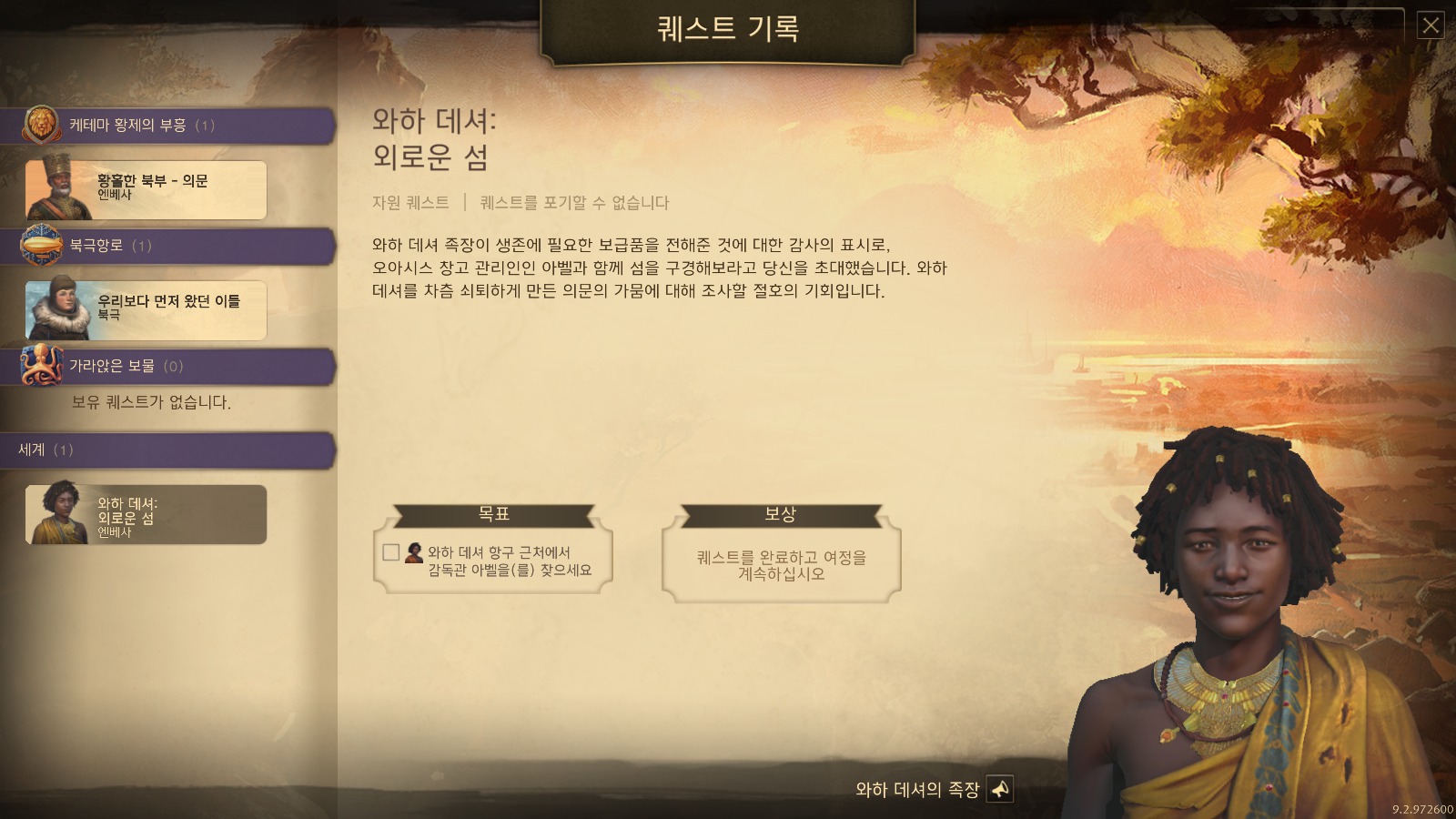 전설 유물을 받고 와하 데셔의 퀘스트가 끝났습니다.