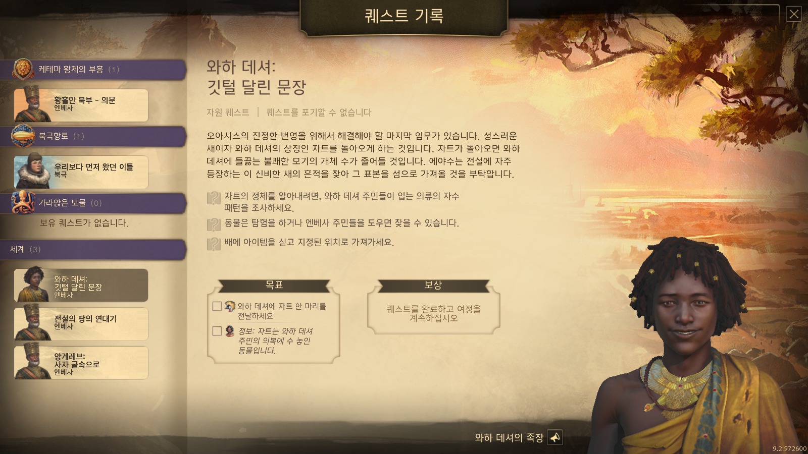 저는 와하 데셔, 키두시 아나토니, 앙게레브의 퀘스트 중 와하 데셔를 먼저 진행했습니다.