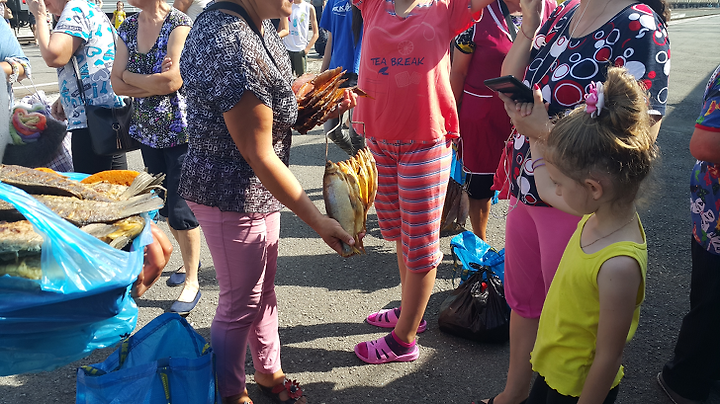 말린 생선들을 많이 파는데 민물 생선인지 비린내가 많이 난다.
