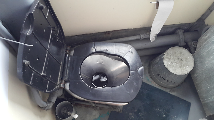 화장실 밑에 고무판을 치우면 바로 배수구다