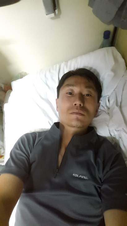검사대를 나와 의자에 앉아있다